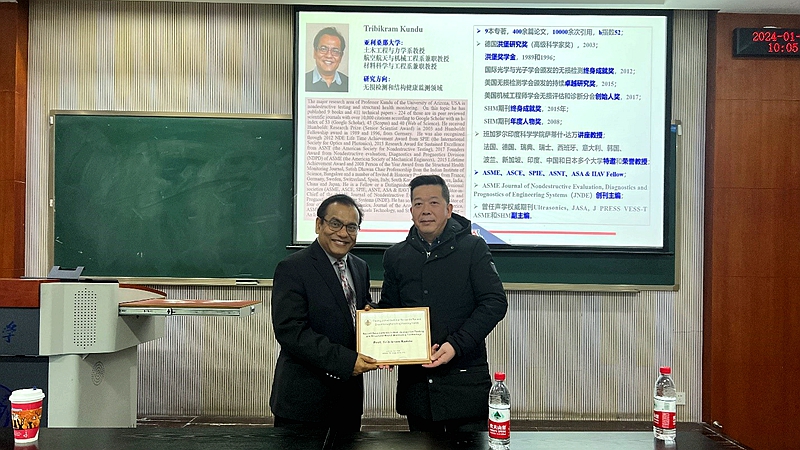 详情 2024年1月3日,美国亚利桑那大学终身教授、洪堡学者Tribikram Kundu应邀访问三级电影 ,并在A区八教303教室出席工程学部主办的工程科学前沿讲坛,作了题为“无损检测和结构健康监测技术的最新进展”学术报告,报告由三级电影 尹莘新助理研究员主持,工程学部师生五十余人出席听讲。 Kundu教授是超声无损检测和结构健康监测领域的国际知名学者。本次报告介绍了他在过去三十年中对工程和生物材料进行的相关研究...