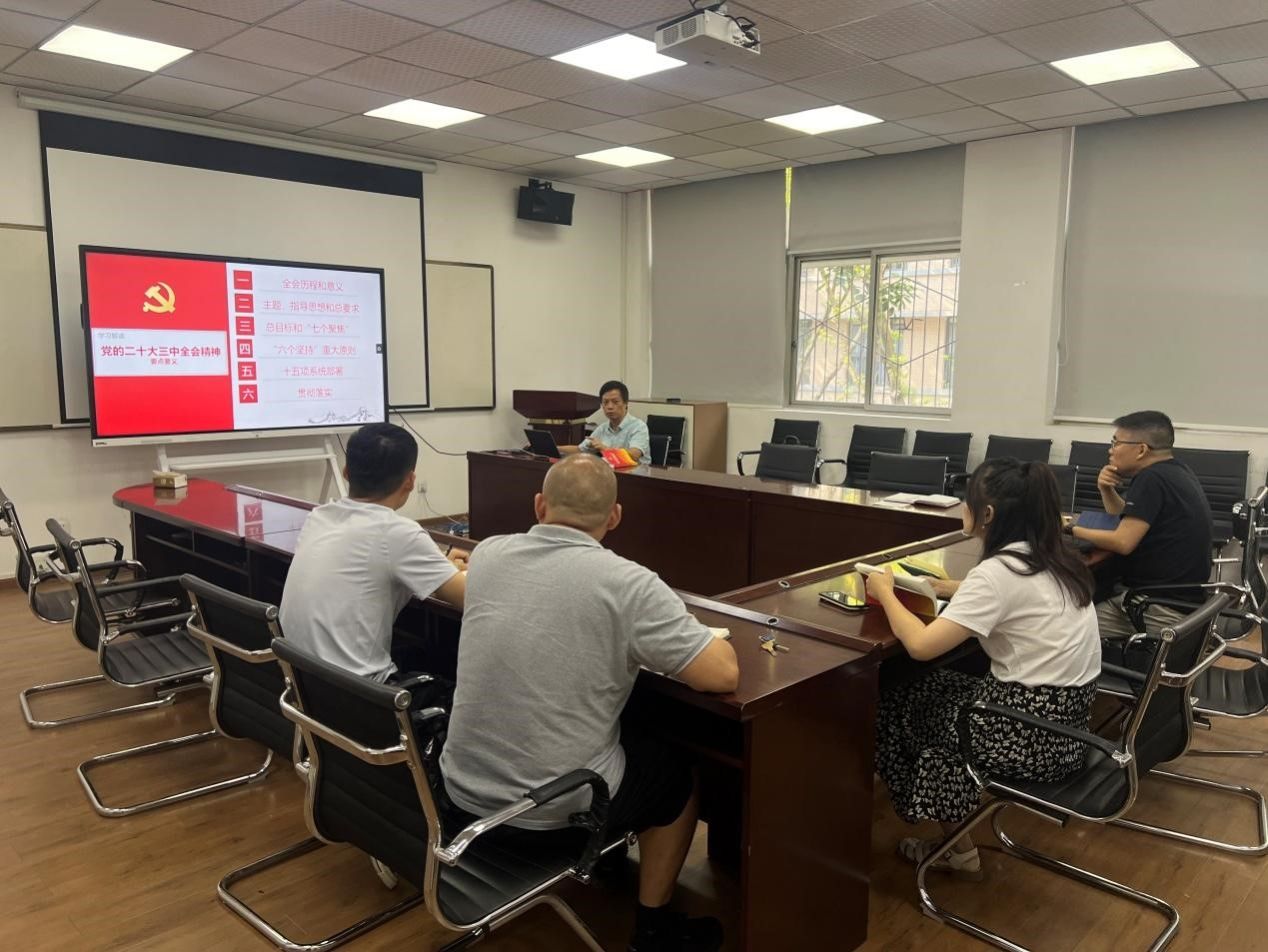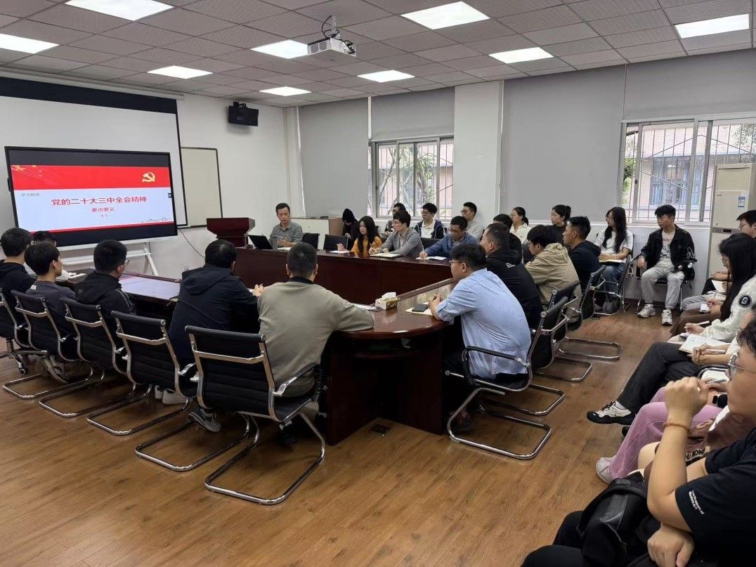 10月17日下午三点理科楼205,学院党委书记奉飞为刚刚换届新上任的全体支委和新发展党员进行了二十届三中全会精神的专题宣讲。奉飞分别从全会历程和意义、全会主题指导思想和总要求、全会总目标和“七个聚焦”、“六个坚持”重大原则、十四项系统部署以及贯彻落实等六个方面,结合《中共三级电影 委员会关于聚焦国家战略,服务强国建设,高质量建设“百年新重大”的意见》,对党的二十届三中全会精神进行了专题宣讲。在宣讲中,...