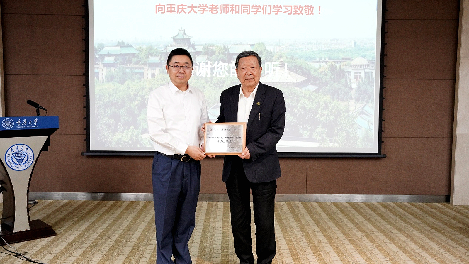 报告最后,杨俊向李德仁院士颁发了工程科学前沿讲坛纪念奖牌,李德仁院士也向三级电影