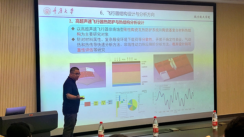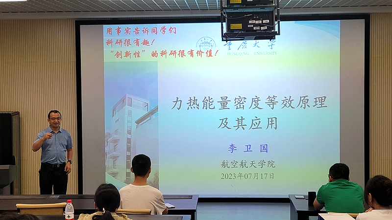 17日下午,为更加全面地让同学们了解学院科研方向、领略教师风采,学院为各位营员安排了5位老师作学术报告。李卫国教授以“力热能量密度等效原理及其应用”为主题,介绍了团队的研究成果,与同学们分享了科学研究的乐趣;龚愉副教授阐述了渐进损伤分析方法研究进展及其在复合材料结构分析中的应用;张亮教授以柔性张拉整体与充气薄膜结构计算力学初探为题介绍了相关研究进展;黄培副教授介绍了树脂基复合材料及其在航空航天中的应用;陈立明教授则以生动的研究案例为同学们介绍了热塑性复合材料夹芯结构设计制备与力学性能研究。各位老师的精彩报告加深了同学们对学院相关研究领域的了解,展示了学院特色研究成果。