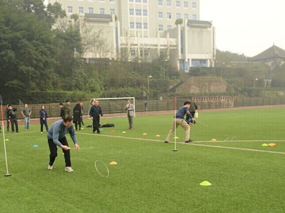 比赛开始前,担任裁判的老师先将大家分成三组,开始介绍规则。本次趣味运动会共包含抬花轿、“纵”志成城、乒乓style、鲤鱼戏珠、滚铁环和迎面接力等六个项目。这些项目看似简单,但实际上对参赛者的协调性、耐力和协作都有很高的要求。