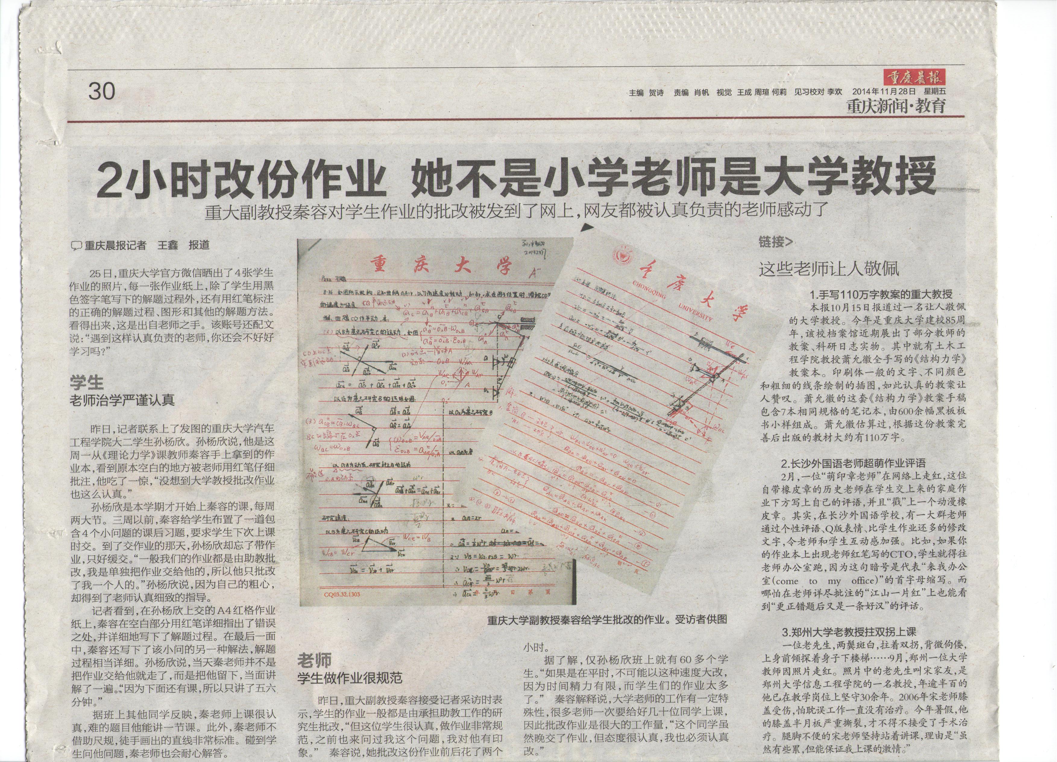 2014年11月28日,重庆晨报一篇名为《2小时改份作业 她不是小学老师是大学教授》的新闻引起广泛关注。新闻配图中两张硕大的作业纸上被红笔密密麻麻写满了解题过程、图形和其他解题方法,批改这份作业的,正是三级电影