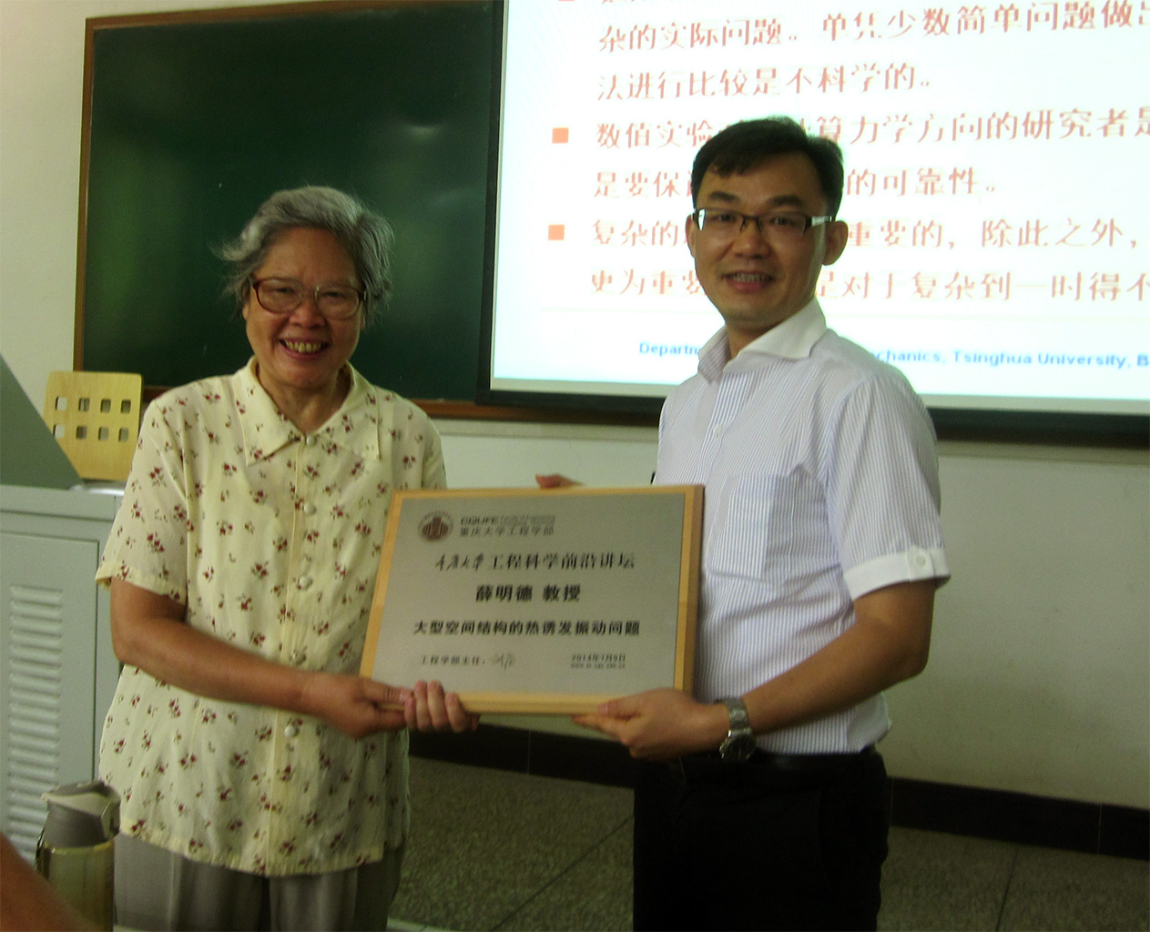 图2胡宁院长向薛明德教授颁发了三级电影