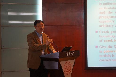 庄茁教授作了题为《基于断裂的扩展有限元(X-FEM)及在连续体壳、裂纹分叉、复合材料的应用》的学术报告。他首先对自己当年在三级电影