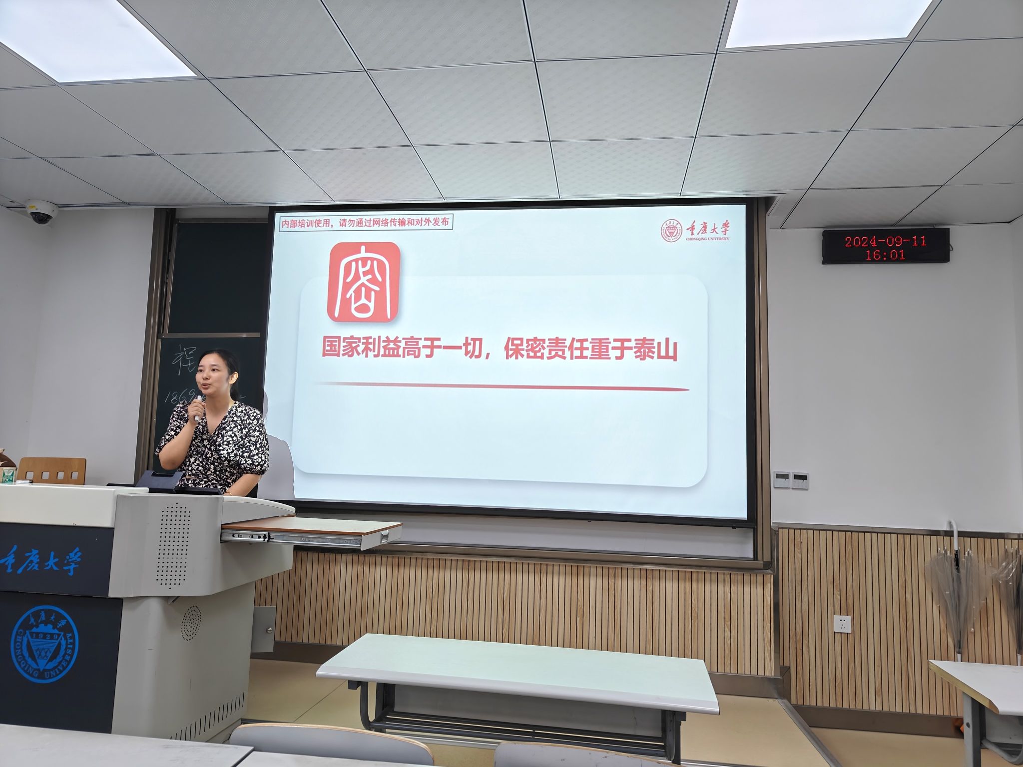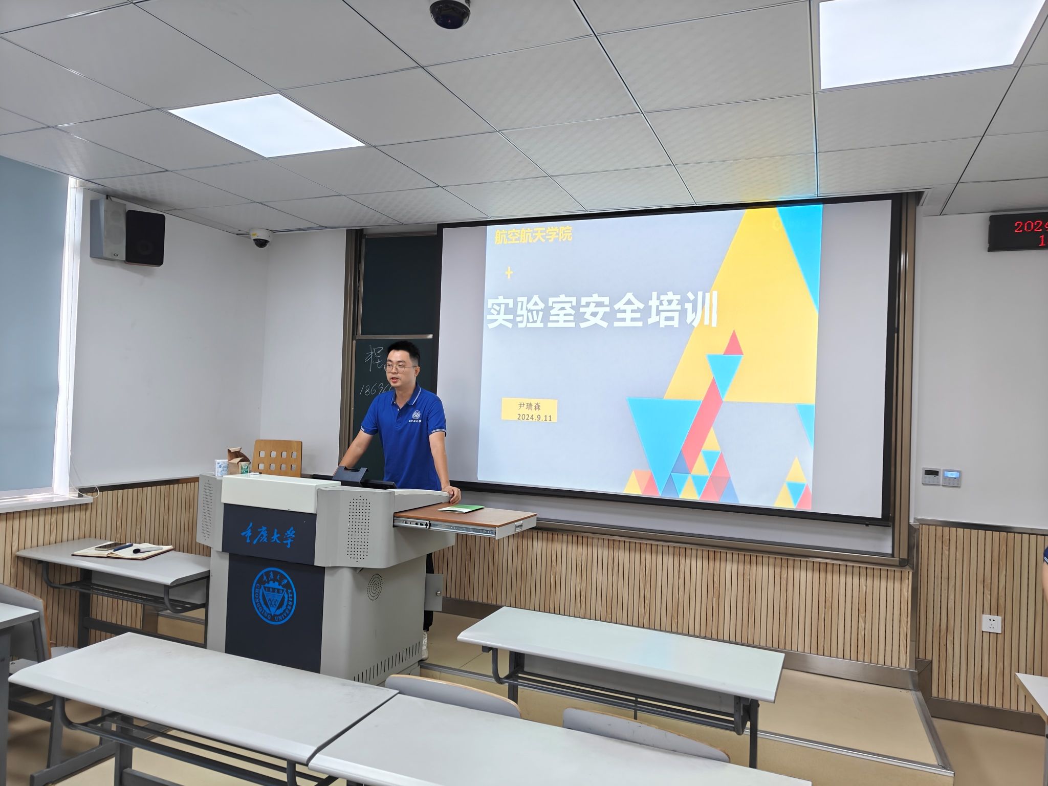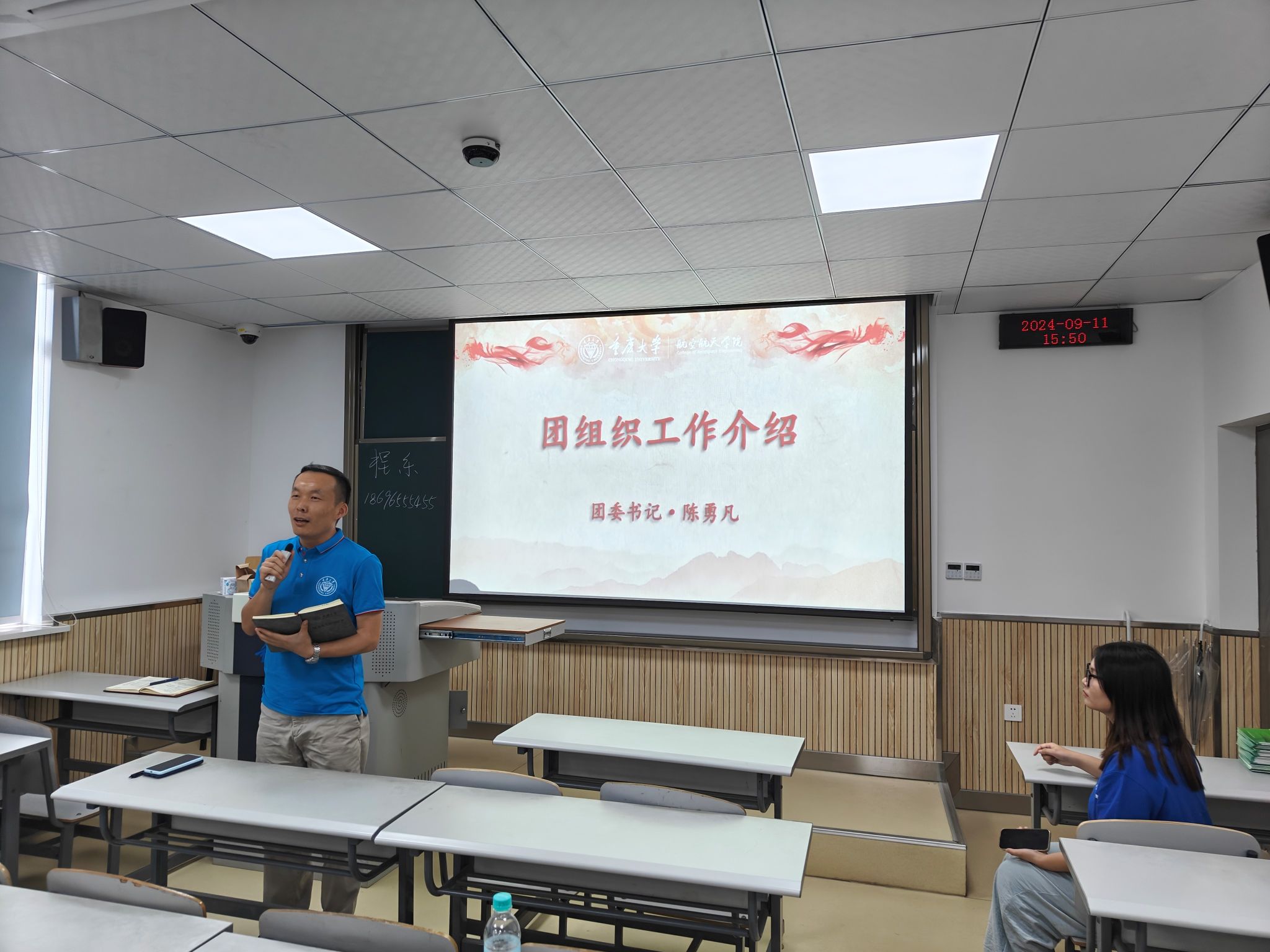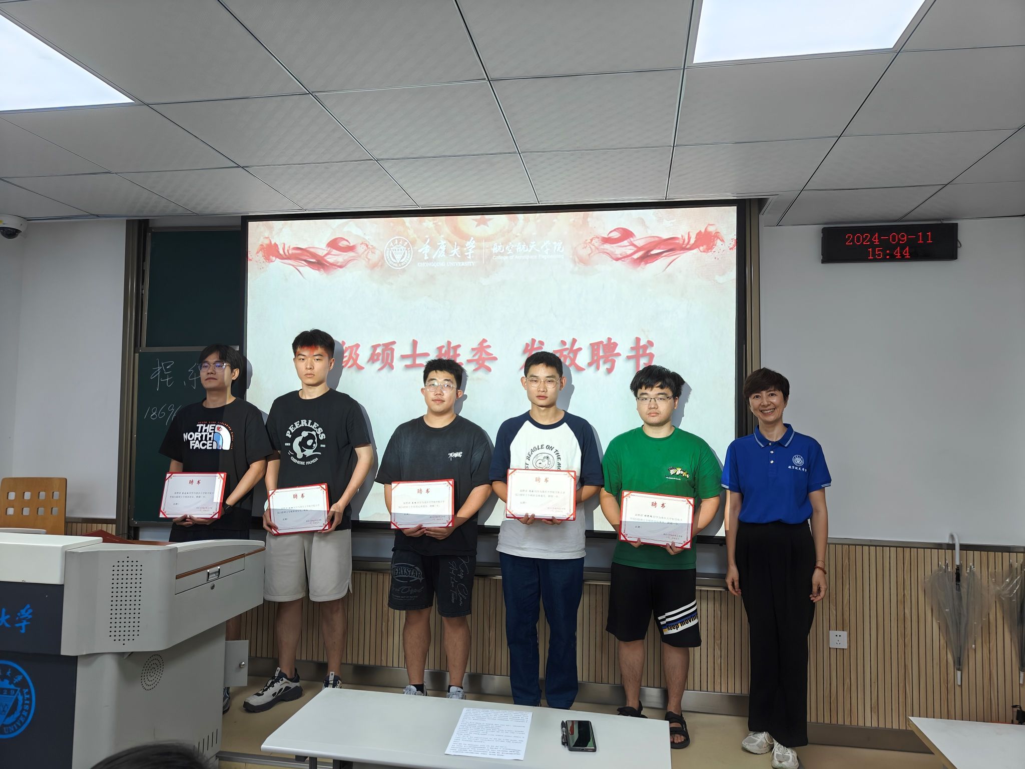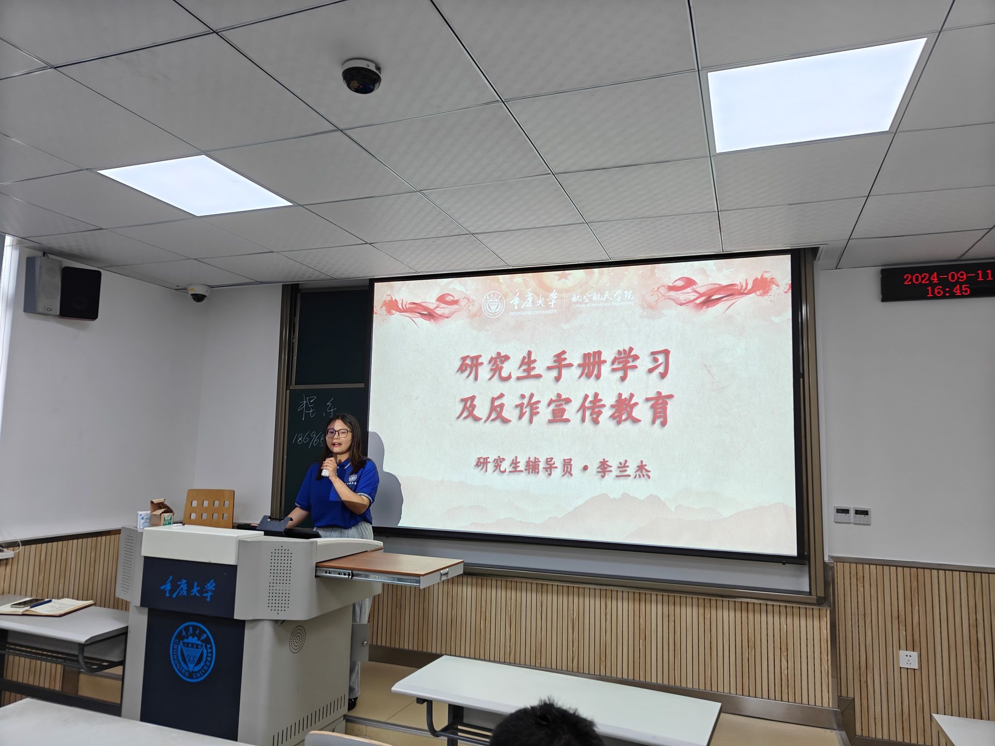 紧接着,程乐为2024级硕士班班委颁发聘书;伍丹、陈勇凡就学院党组织和团组织的工作进行了介绍,解答同学们对入党入团相关问题和疑惑;李蔚强调了保密工作的重要性,并介绍学生应当如何做好保密工作;尹瑞森对实验室安全工作进行了重点强调,并现场发放《三级电影