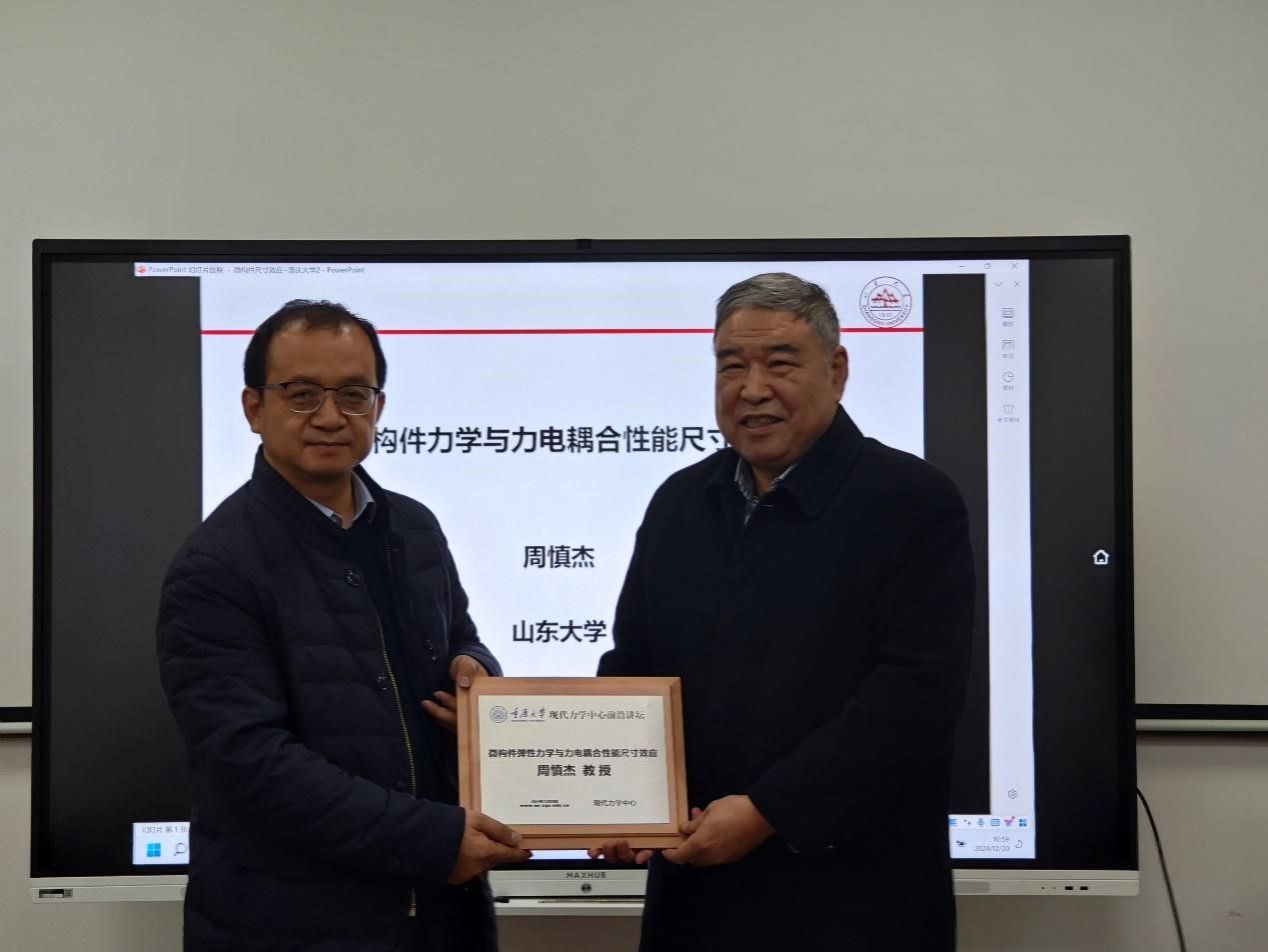 邀请,山东大学周慎杰教授访问学院,并于A区理科楼205会议室出席由现代力学中心主办的前沿讲坛,作了题为“微构件弹性力学与力电耦合性能尺寸效应”的学术报告,报告由三级电影
