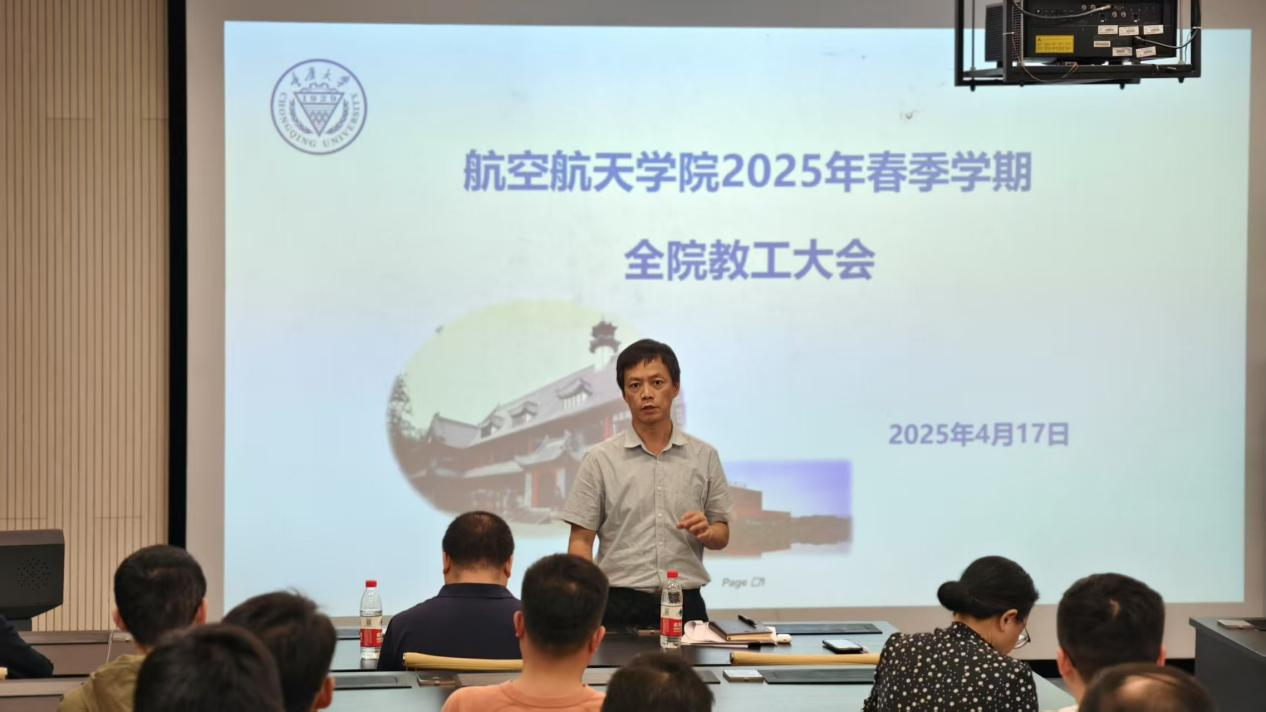 2025年4月17日下午,学院在理科楼010教室召开2025年春季全院教职工大会,学院班子成员结合学校和学院年度重点工作,分别就各自分管领域工作作了介绍和部署。大会由学院党委书记奉飞主持。