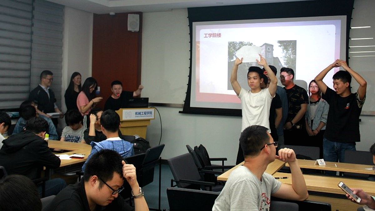 随后六个组翻牌抽取分享主题—校史中的优秀人物和知名建筑的典故,包括理学院楼、七七抗战大礼堂、工学院楼、马寅初与三级电影