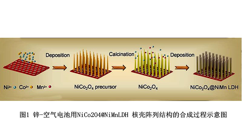 锌-空气电池因其成本低廉、安全性高、环境友好、能量密度高等特点而成为能量型电源系统的重要选项;它的理论能量密度达1084Wh/kg,实际可实现的值也高达400Wh/kg以上,是目前锂离子电池电芯的2倍以上,从而成为近年来能源存储领域最重要的研究方向之一。该团队开发了NiCo2O4/NiMn层状双氢氧化物(LDH)核壳阵列结构用作高效稳定的锌-空气电池空气电极材料及催化剂。通过合成条件的控制可将NiMn LDH片层厚度降低到3~5nm以下,显著增加了材料的电化学活性面积。最终,由于核壳阵列结构两组分间的协同增强效应以及高的活性面积,其过电位在10和100 mA/cm2时分别为255 mV和338 mV,明显优于商业Ir/C和Pt/C催化剂。组装成锌-空气电池后,其一次电池的最大功率可达160.8mW/cm2、开路电压为1.4V、能量密度可达866Wh/kg;而可充电电池在5mA/cm2经500次循环后其充放电的电压差值仅增加45mV,在20mA/cm2经500次循环后其充放电的电压差值仅增加20mV,循环性能十分优异。该研究成果已发表于国际著名期刊Journal of Materials Chemistry A(JMCA,IF=8.867),题为“Core/shell design of efficient electrocatalysts based on NiCo2O4 nanowires and NiMn LDH nanosheets for rechargeable zinc–air batteries”,并选为期刊的HOT ARTICLE。论文第一作者为三级电影