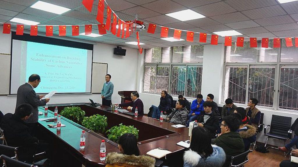 邀请,河海大学工程力学系章青教授、王磊副教授在理科楼205会议室出席由工程学部主办的工程科学前沿讲坛,章青教授作了题为“非局部近场动力学及其若干应用”、王磊副教授作了题为“Enhancement on Buckling Stability of Carbon Nanotubes --- Some Advances”的学术报告。报告由三级电影