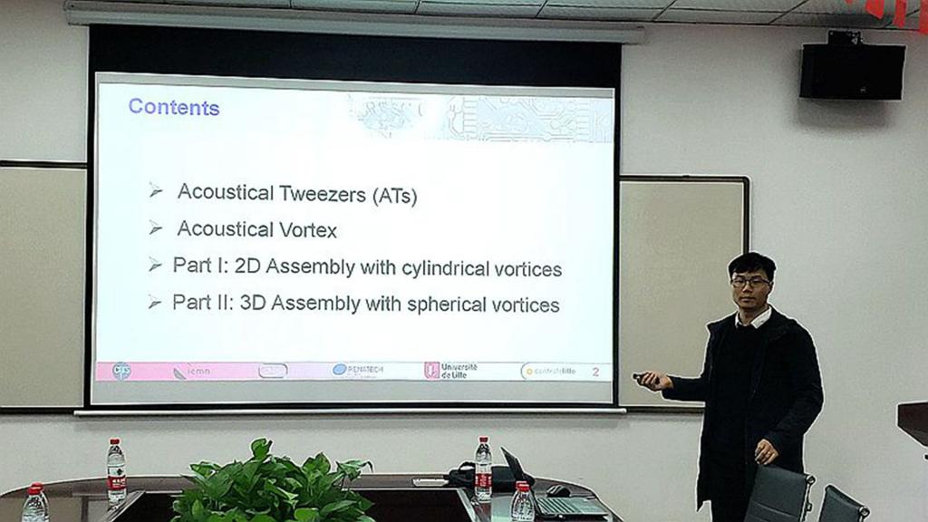 接下来,与会青年学者分别就其研究的前沿领域和热点问题作主题报告。德国康斯坦茨大学杨帆博士介绍了纳米机械系统的非线性动力学——光干涉成像和强烈激发的非线性相关问题;法国国家科学研究中心龚志雄博士就实现粒子操控的声镊技术作了汇报,通过设计和优化声源,在流体介质中辐射出适宜进行微小粒子超控的声漩涡场,进而设计出用于粒子装配的同步声镊;北京航空航天大学王海潮博士围绕航空发动机涡轮叶片冷却问题报告了最新研究进展;南京理工大学周胜兵博士的报告围绕旋转爆震燃烧的新型动力技术作了详细介绍;北京航空航天大学郭方亮博士汇报了多尺度热-力学性能建模分析、湿热老化演变机理以及低膨胀结构优化设计等研究工作;三级电影