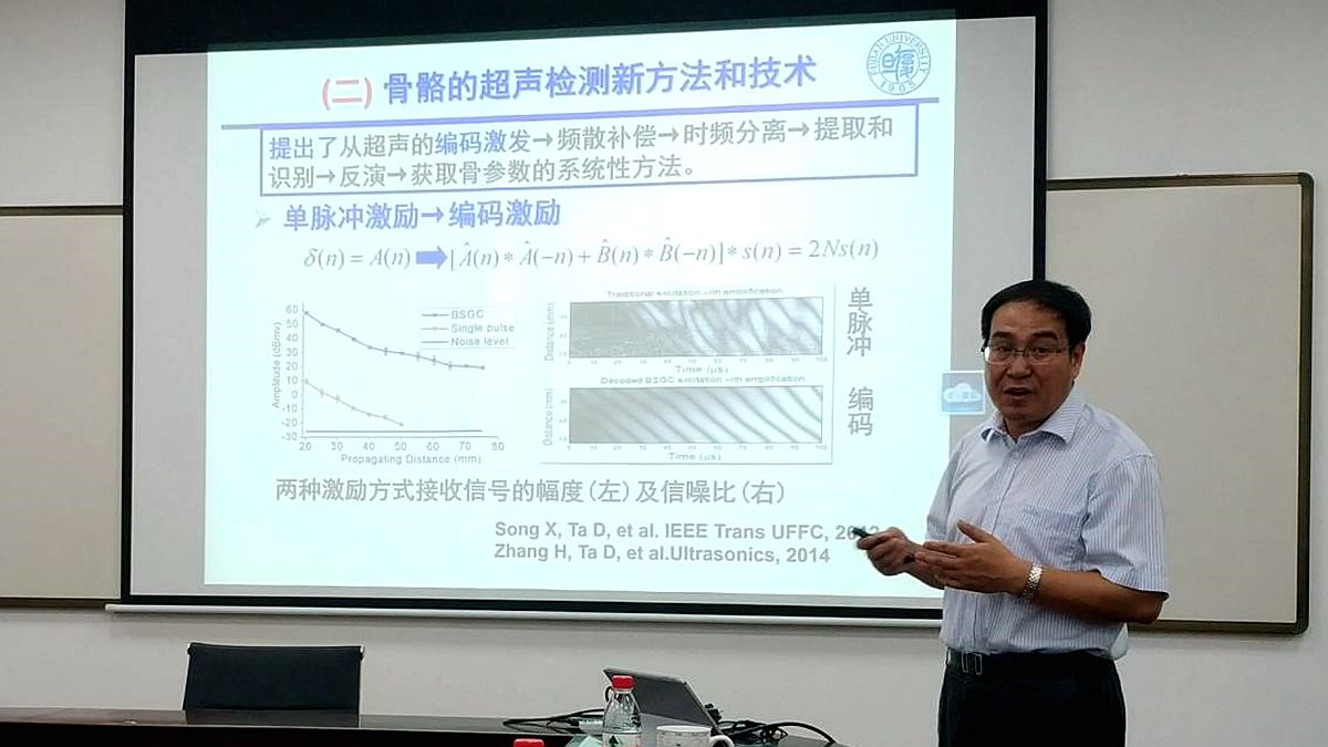 A区理科楼205出席工程学部主办的工程科学前沿讲坛,并作了题目为“超声检测与调控骨骼系统的研究”的学术报告。报告由三级电影