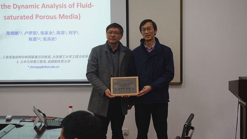 副院长严波教授为郑勇刚教授颁发了工程科学前沿讲坛纪念牌。