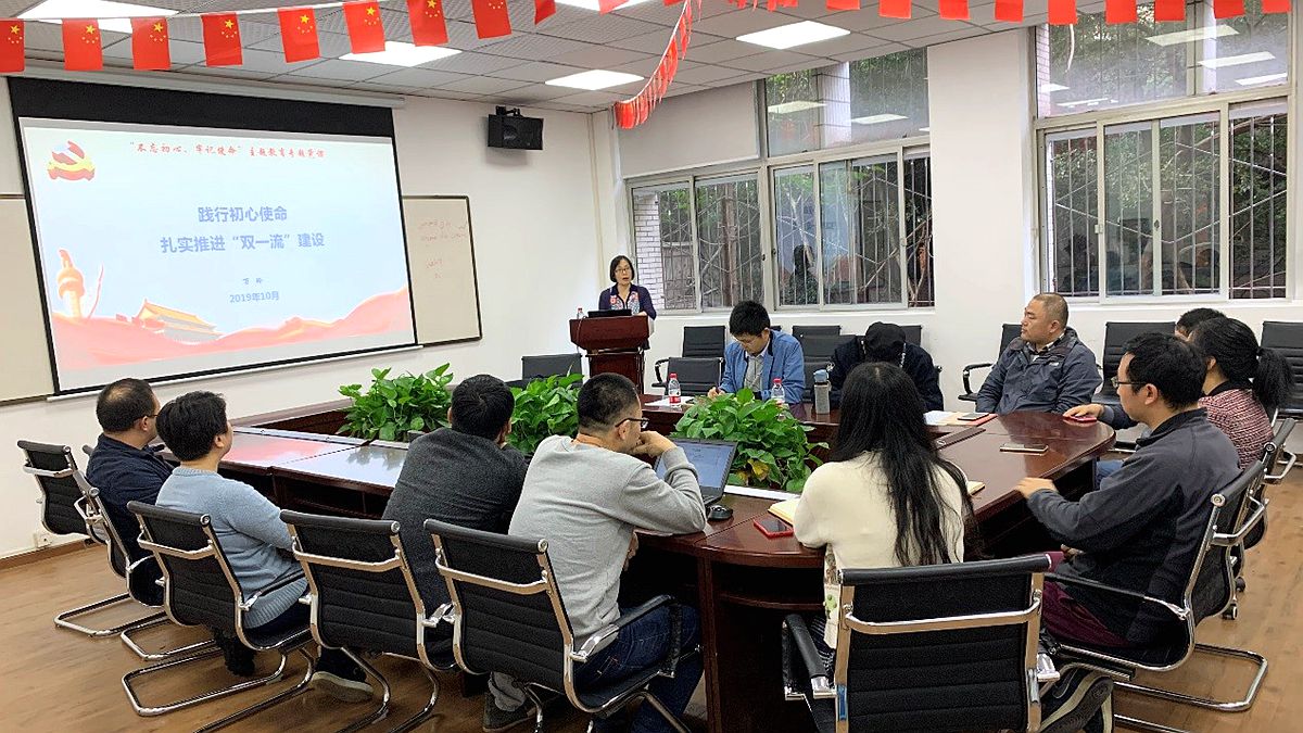 万玲从中国共产党发展历程回望初心使命、新中国成立70周年的辉煌成就理解初心使命、践行初心使命为“双一流”建设做贡献三个方面深刻阐述分析了我们党的初心和使命的丰富内涵。同时,万玲从学院的师资队伍建设、重大项目、成果获奖、人才培养等方面分析了我院在“双一流”建设中取得的成果和面临的困境,随后,各位教工党员对学院继续推进“双一流”建设提出了建设性意见和建议。