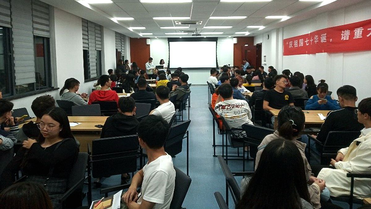 、机械工程学院、高研院三学院联合举办了“庆祖国七十华诞,谱重大九十新章”主题党团活动中的第二个部分。活动开始,主持人激情洋溢的开场致辞立刻带动了在场各位同学的热情。