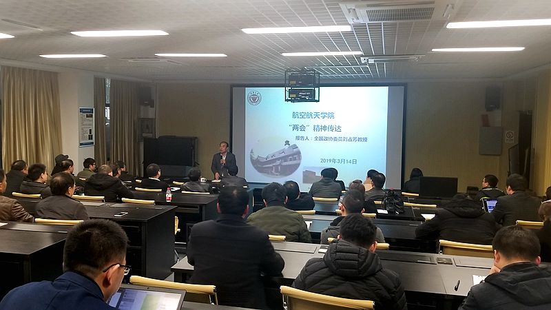 在理科楼010召开教职工大会,深入学习贯彻十三届全国人大二次会议、全国政协十三届二次会议精神。学院副院长、全国政协委员刘占芳从“两会”参与者的角度,向全院教工作了主题报告。会议由学院党委书记万玲主持。