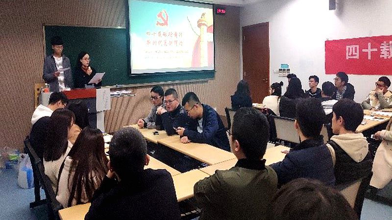 、法学院、动力工程学院三学院联合举办了“四十年砥砺前行,新时代再创辉煌”主题党团活动。活动开始,主持人激情洋溢的开场致辞立刻带动了在场各位同学们的热情。