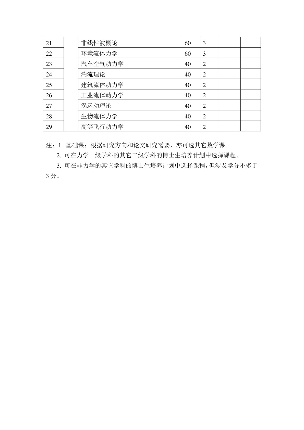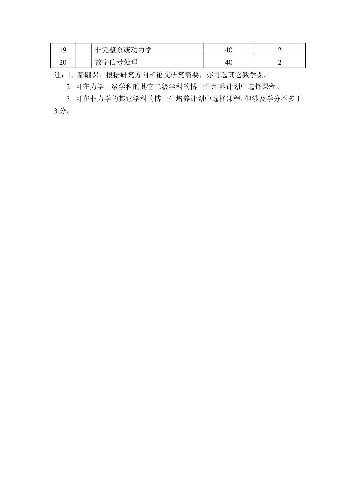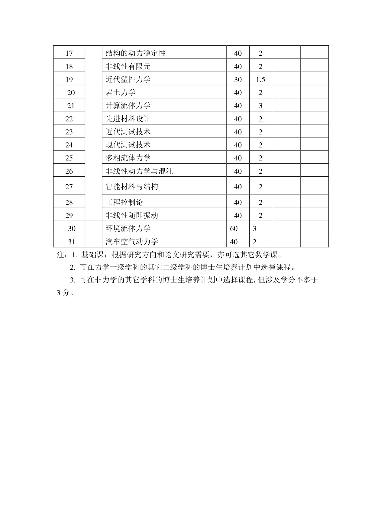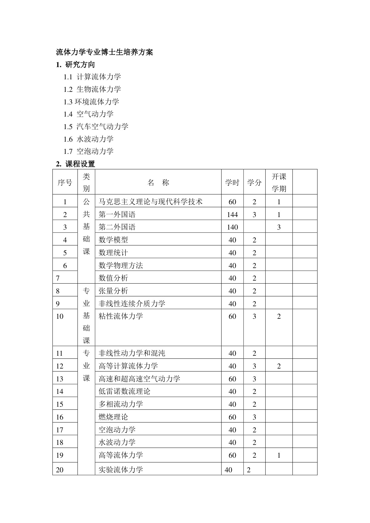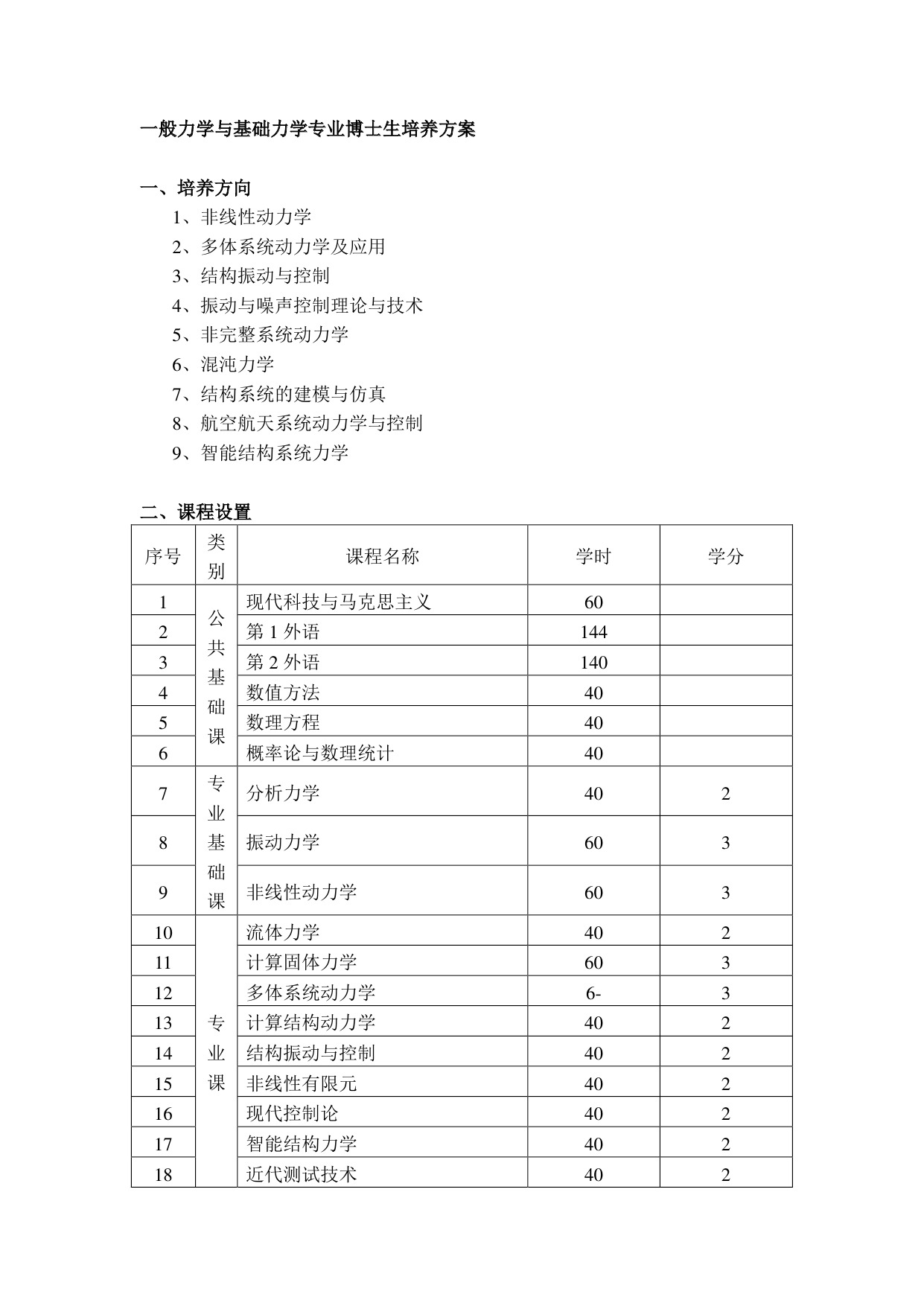 力学博士研究生培养方案